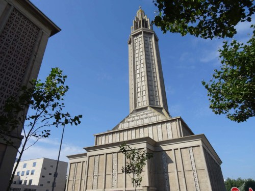 Na de oorlog moesten er voor de plusminus 80 000 mensen die dakloos waren in recordtempo woningen en voorzieningen komen. De architect Auguste Perret (1874-1954) met ervaring in het gebruik van geprefabriceerde elementen in gewapend beton, waarmee snel en goedkoop gebouwd kon worden, kreeg de leiding over de herbouw van de stad. Perret was al bekend vanwege zijn gebouwen van gewapend beton in Parijs, waaronder het art-deco Théâtre des Champs-Élysées, het Palais d’Iéna, het Mobilier National in de voormalige tuinen van de Manufacture des Gobelins. Als je in Parijs bent kan je die gebouwen natuurlijk stuk voor stuk gaan bekijken, maar in de collectie van het Cité de l’Architecture et du Patrimoine in het Palais de Chaillot (Place du Trocadéro), staan ze allemaal als model bij elkaar, samen met nog meer beroemde en bekende gebouwen. Vanaf het terras tussen de twee gebouwen van het Palais Chaillot heb je daar ook nog eens het mooiste uitzicht op de Eiffeltoren.