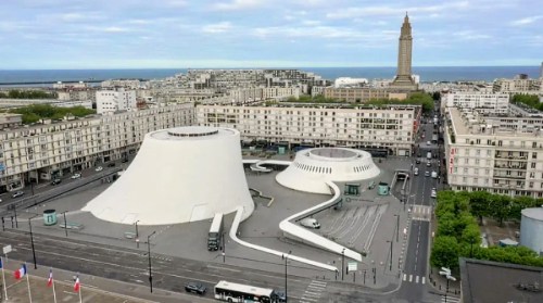 Vreemd en spectaculair zijn de twee ‘vulkanen’ van Oscar Niemeyer (de hoofdontwerper van Brasilia, de nieuwe hoofdstad van Brazilië, die net als het nieuwe Le Havre in één keer werd gebouwd). In de kleine vulkaan bevindt zich de bibliotheek, in de grote vulkaan kan je naar de schouwburg.