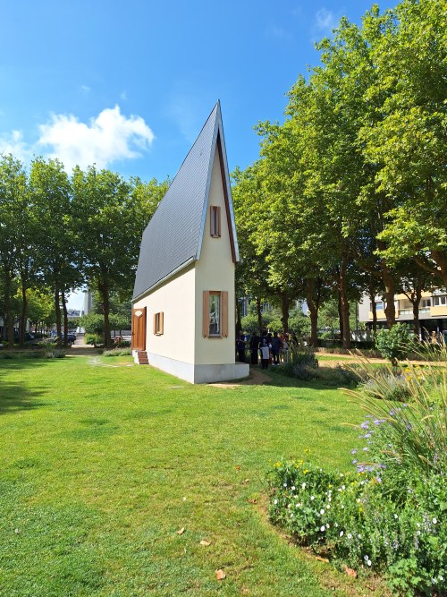 Na de wederopbouw werd de stad gaandeweg verrijkt met kunstwerken. Een van mijn favorieten is het smalle huisje van Erwin Wurm, een benauwde woning waar je letterlijk je kont niet kan keren, als zinnebeeld van benauwd en burgerlijk wonen.