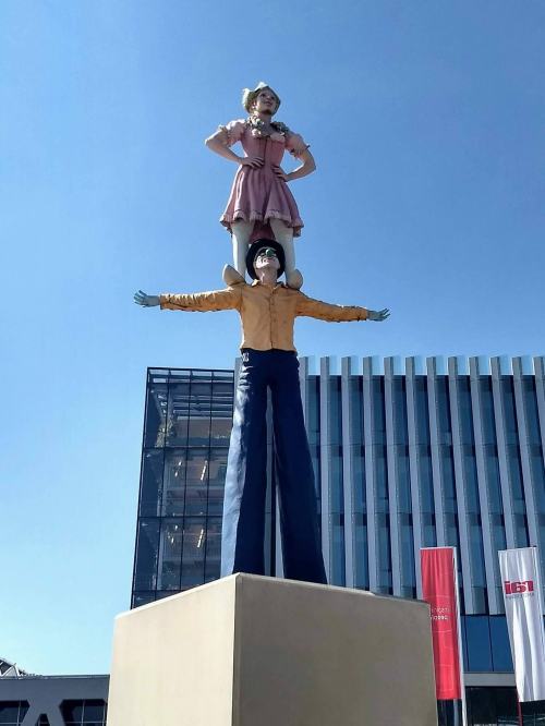 Wat mij betreft zijn deze reusachtige figuren een ode aan een nieuwe, zelfbewuste generatie. In het dagelijks leven kijk ik regelmatig op tegen jonge mensen, vooral in de tram, waar ze ver boven mij uitsteken.