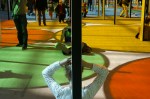 The Dreamers, 2013, Video/Sound installation. Seven channels of colour High-Definition video on seven 65″ plasma displays mounted vertically on wall in darkened room; four channels stereo sound